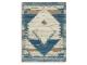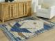 Machine woven, distressed medallion design in blue, brown and tan. No pile. Polyester, backed with cotton. Spot clean only. Rug pad recommended.