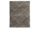 Machine woven shag, diamond design in gray and cream. 50mm pile. Polyethylene terephthalate (PET), backed with polypropylene. Spot clean only. Rug pad recommended.