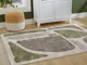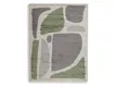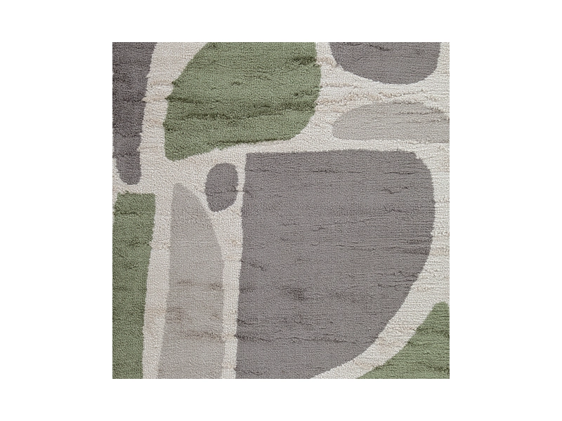 Machine woven shag, abstract design in green, gray and ivory. 22mm pile. Polyester, backed with polyester/polypropylene blend. Spot clean only. Rug pad recommended.