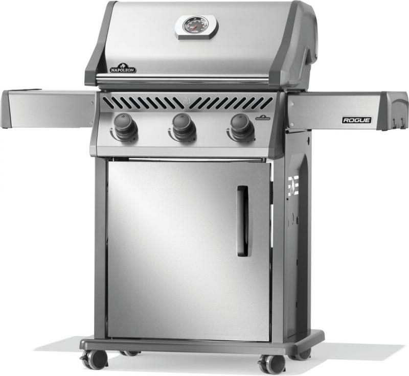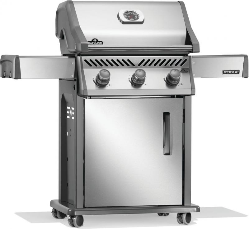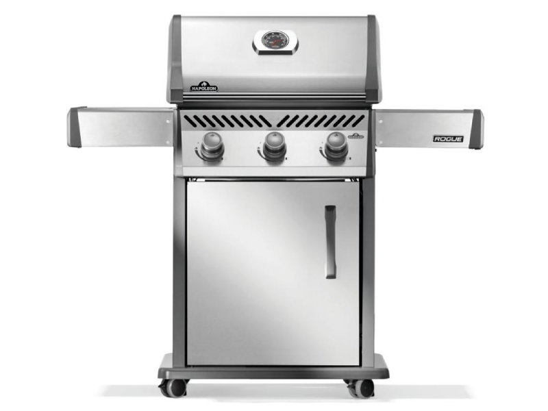 Napoleon’s Rogue® 425 Propane Gas Grill is a premium, yet affordable BBQ marvel. With three burners that light instantly and effortless temperature control, it ensures perfect grilling or roasting. Its cast iron cooking grids deliver even heating and exquisite sear marks, while stainless steel sear plates help reduce flareups. Durable and stylish stainless steel surfaces resist weather and wear. Foldable side shelves enhance storage versatility. Ignite instantly with battery-free ignition. Move effortlessly with Locking Caster Wheels. Enjoy exceptional grilling in any space.