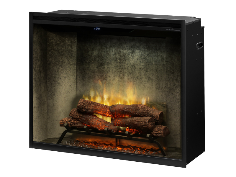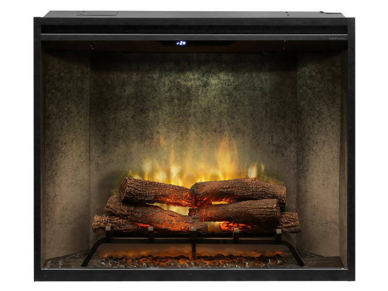Enjoy classic, elegant features with Revillusion— the electric fireplace inspired by traditional design. You’ll be entranced by the flickering flames as they dance between glowing logs, surrounded by a weathered concrete interior with natural soot markings. The timeless appeal of Revillusion creates an authentic, everlasting impression.