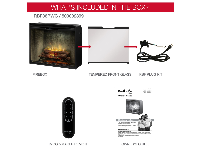36" Dimplex Revillusion Portrait Built-In Firebox with Front Glass and Plug Kit - RBF36PWC-FG