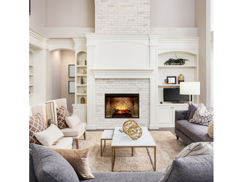 Enjoy classic, elegant features with Revillusion— the electric fireplace inspired by traditional design. You’ll be entranced by the flickering flames as they dance between glowing logs, surrounded by a herringbone brick interior with natural soot markings. The timeless appeal of Revillusion creates an authentic, everlasting impression.
