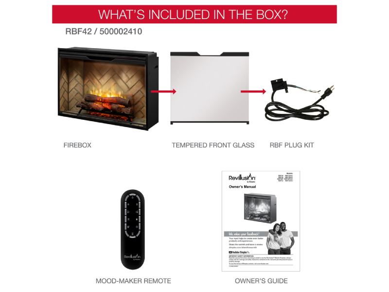 42" Dimplex Revillusion Built-In Firebox with Front Glass and Plug Kit - RBF42-FG