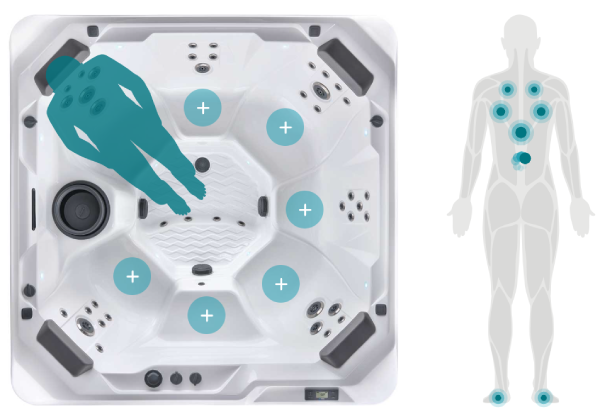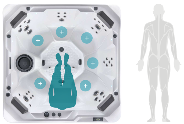Comfortable seats with purposefully arranged jet systems work together to target specific muscle groups. The result is a distinctive massage from your neck to your shoulders, back, wrists, calves, and feet.