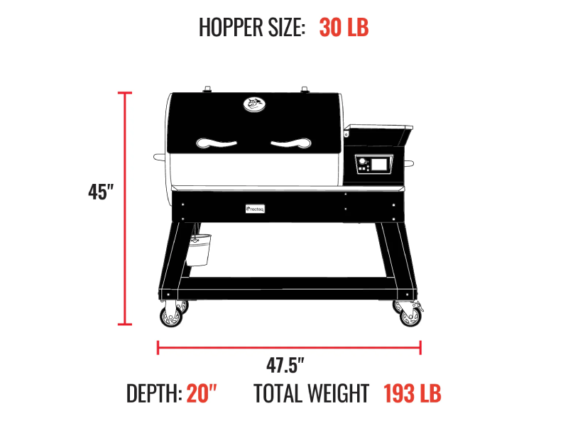 - Cook to your heart's content: 30-pound hopper capacity for 30 hours of continuous cooking without having to refill.
