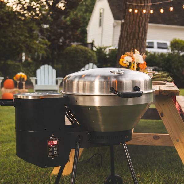 22" diameter stainless steel dome With wraparound rainproof venting, the dome lid ensures proper air flow and performance cooking.
