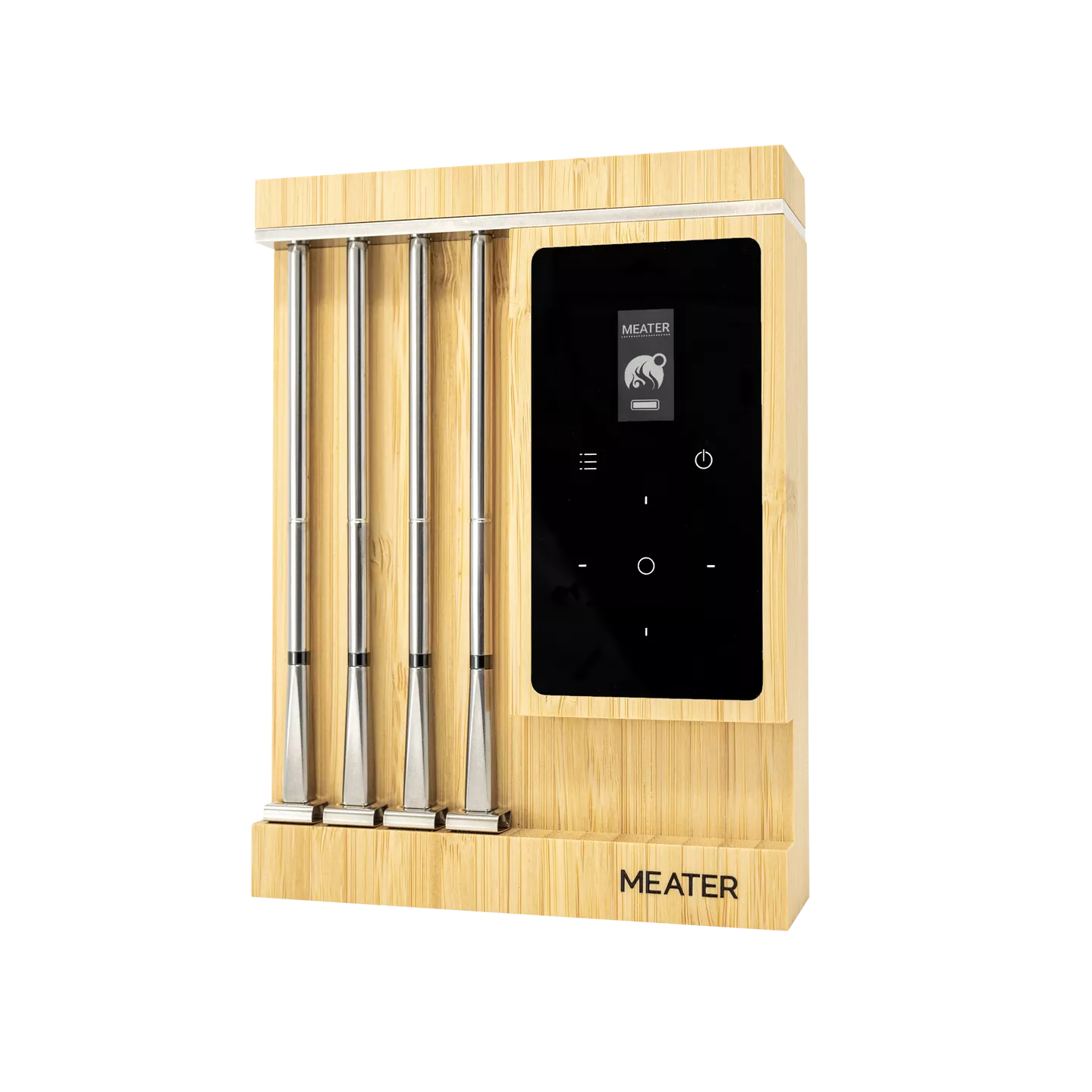 Cook for a crowd and get real-time data on up to four cooks from anywhere with MEATER® Pro XL. Make brisket, steak, fish, and ribs all at once with four thermometers that have a max temperature of 1000˚F and a 100% waterproof design. Spend more time with family and friends and less time at the grill with unlimited range from built-in WiFi. Check on your cooks from the MEATER® App while Smart Temp™ Technology finds the true lowest temperature of your proteins with five internal sensors. MEATER Pro XL is sleeker and leveled-up with pin-point ±0.5˚F accuracy, a waterproof design, and two hours of cook time from a 5-minute charge. Grill, deep fry, sear, and smoke your way to perfect results with MEATER.