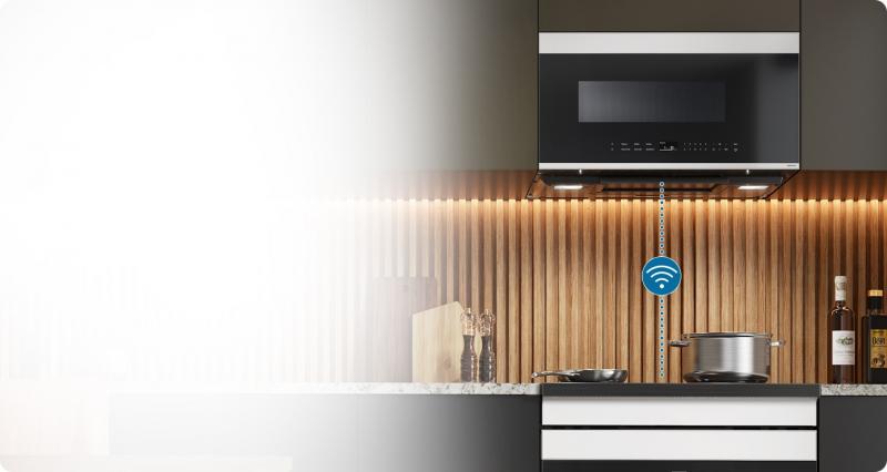 * Available on Android and iOS devices through the SmartThings App. A Wi-Fi connection and a Samsung Account are required. ** Only available when used in combination with certain Samsung cooktops or range ovens that have Wi-Fi connectivity. Each appliance should be connected to a Wi-Fi network and registered in the Samsung SmartThings App. *** The Auto Connectivity function may not work normally when the temperature is set high.