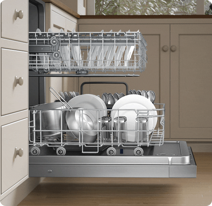 Height-adjustable upper rack makes it easy to accommodate various dishware shapes and sizes.