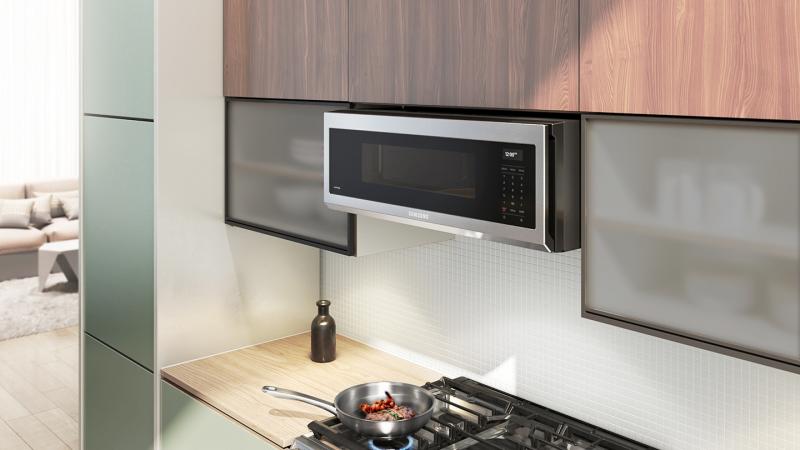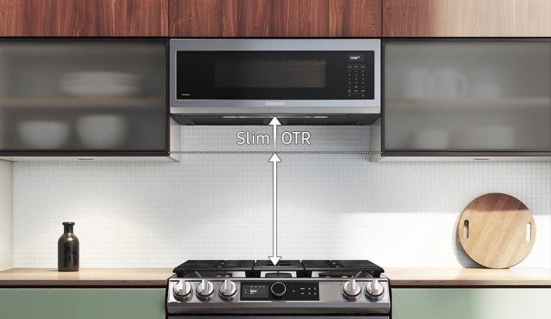 Enhance the look of your kitchen with the low-profile design of the slim OTR. It fits into the same space as an undercabinet hood meaning you can maximize your food preparation space by moving your microwave off the countertop. While slim, it still has a sizeable 1.1 cu. ft. capacity that will easily hold cooking utensils of various sizes, including tall glasses, wide plates and big bowls.
