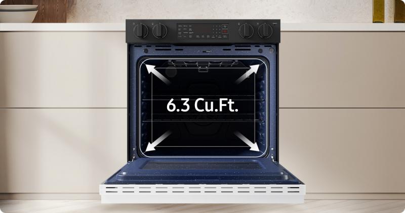 Create many more or much larger dishes with a huge 6.3 cu. ft. capacity oven. It opens up more possibilities in home cooking. You can prepare multiple dishes at once, like vegetables, pastries or casseroles. Or easily cook large items, like a big roast or holiday turkey with all the trimmings.