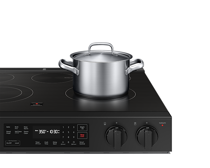 Samsung’s new knob design lets you precisely control and activate your cooktop. The knob buttons must be pinched in on both sides before the knobs can be pushed and turned.