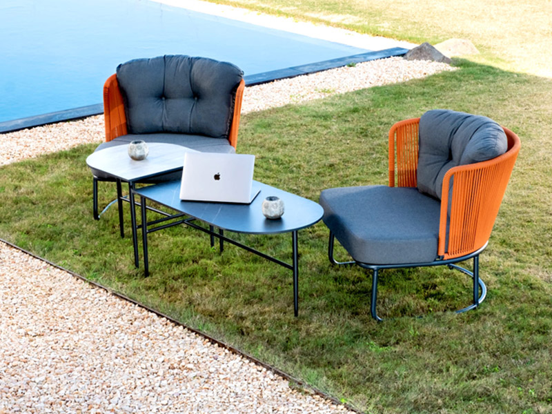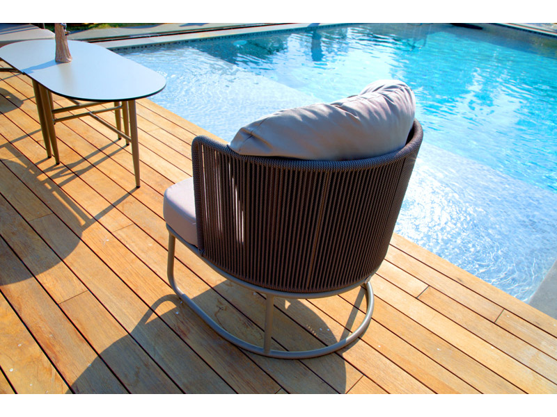 A perfect modern update on classic furniture utilizing the unique contrast and combinations of aluminum and rope. The frames are constructed of powder-coated aluminum, tied with impeccable olefin rope to provide a sense of openness to your space.