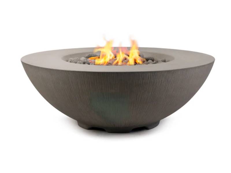 - CONSTRUCTION - The Shangri-La fire table is hand cast from high performance concrete with 2 coats of clear sealer applied It has a raked texture on the sides and matte texture on top.