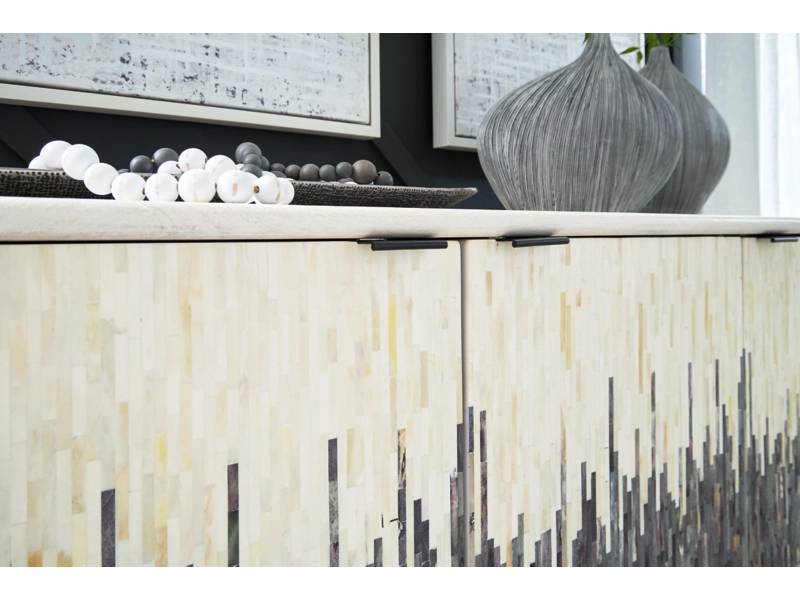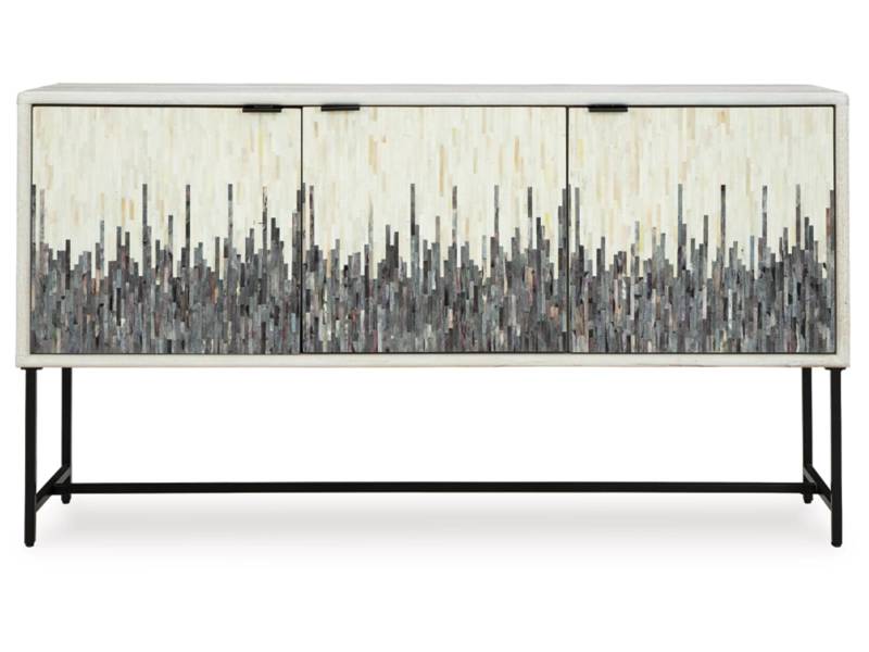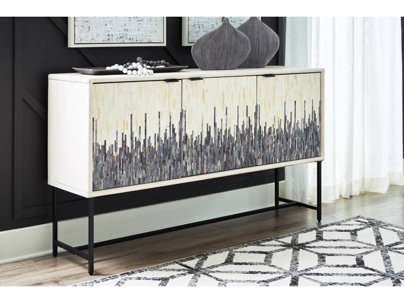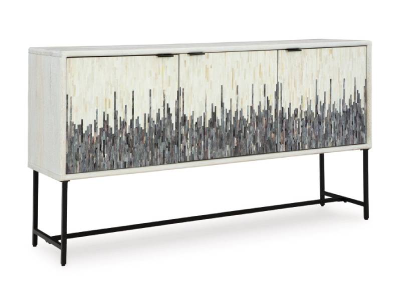 Looking for a showstopping accent for your home? The Freyton accent cabinet combines fashion and function in an exclusive way. It offers a creative take on a traditional cabinet, with a strip pattern in white, gray and black. Inside the doors, two shelves suit all your storage needs. Redefine your modern decor with this one-of-a-kind piece.