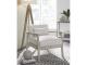 Keep your seating casually cool with this accent chair. The clean-lined design sports a gray finish for a modern appeal, while light neutral upholstery in a herringbone pattern creates textural interest. Antiqued pewter-tone accents add a touch of urban flair, rounding out this relaxed take on contemporary style.
