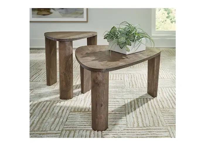 The Reidport accent table set has an elevated air, defining your living room with simply elegant style that’s equally as functional. Each table is made with naturally beautiful mango wood and further refined with a grayish brown finish. The coffee table is a perfect host for a chic book arrangement or your favorite candles, while the small nesting table is ideal for keeping beverages and remotes close.