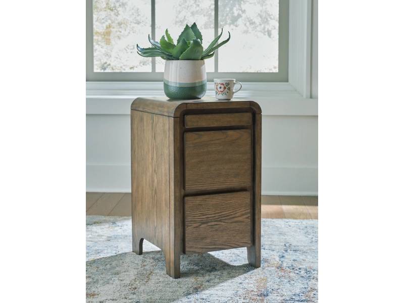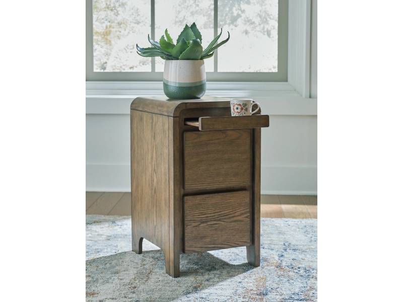 In the market for furniture that combines contemporary form with smart functionality? Look no further than the Jensworth accent table. Its drawers keep essentials within reach, while the pull-out tray easily holds nibbles and drinks. And its USB charging options make it easy to stay powered up. Hosting or lounging, this table has you covered in style.