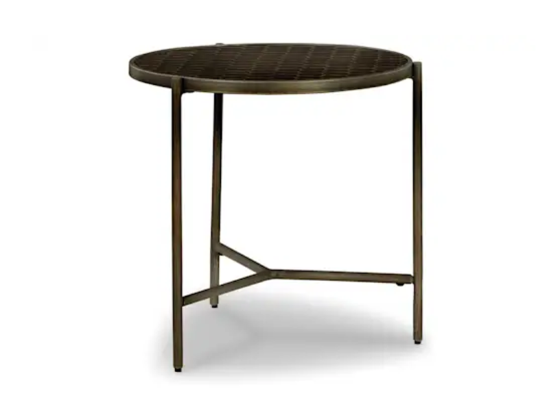 Play up your contemporary cool character with this end table. The scooped honeycomb design on the top recalls retro motifs for a modern era, with a distressed brown finish enhancing the pattern. A round tubular base with a gray glaze rounds out the look. This table glows with a refined kind of radiance.