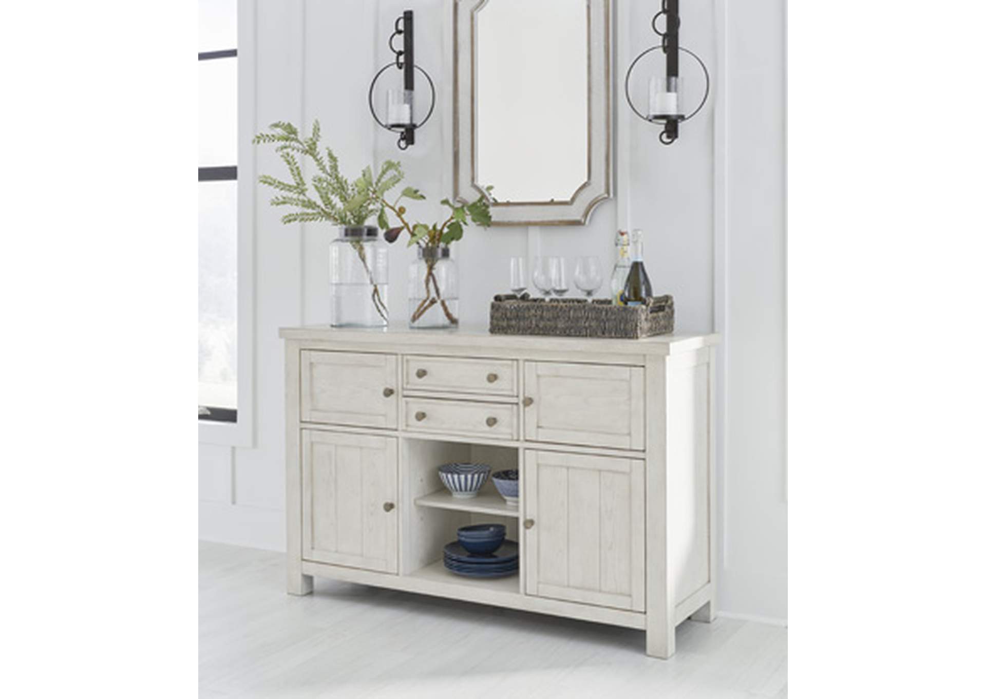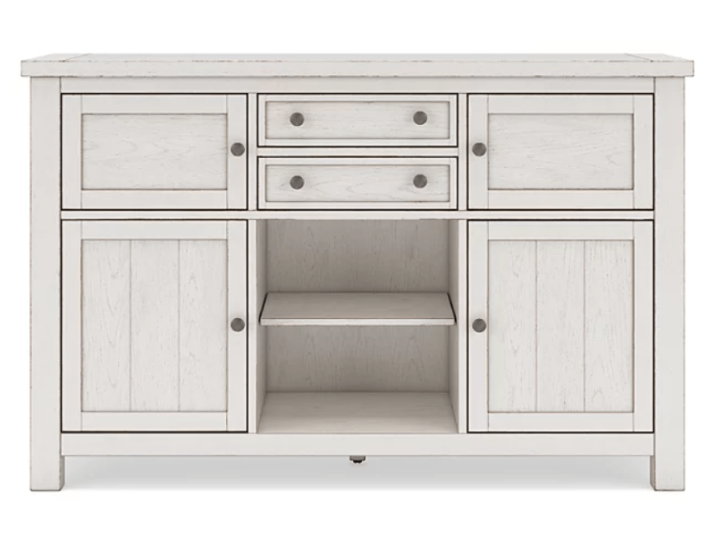 The Robbinsdale dining server is sure to impress come mealtime. With its antiqued white finish and planked effect cabinet doors, farmhouse-style storage has never been so fashionable.