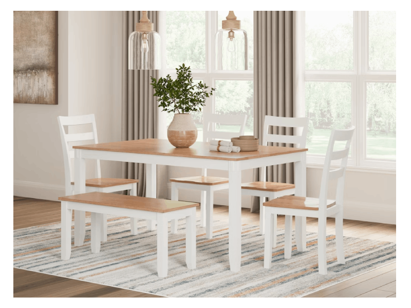 Signature Design by Ashley Gesthaven Dining Table with 4 Chairs and Bench (Set of 6) - D398-325