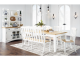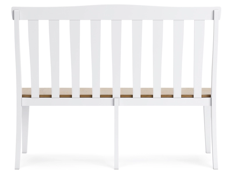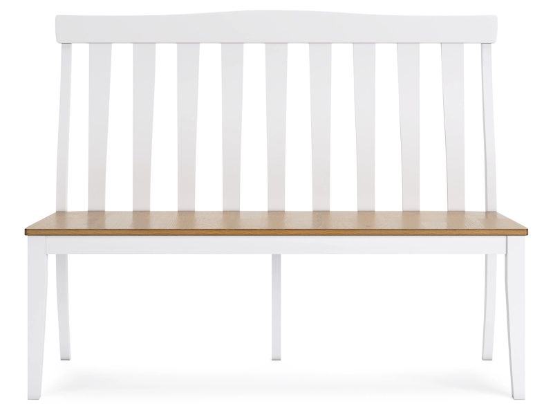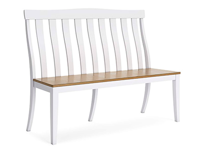 Casual style with substance. The Ashbryn double dining chair's two-tone finish of classic white and butcher block oak veneer adds a relaxed vibe to a delicious design. The curved shape of its bent slat-back chair frame offers a sense of modern farmhouse style, while the contoured seat adds comfort. Sit back and cozy up in charmingly fine fashion in your informal dining room or eat-in kitchen.