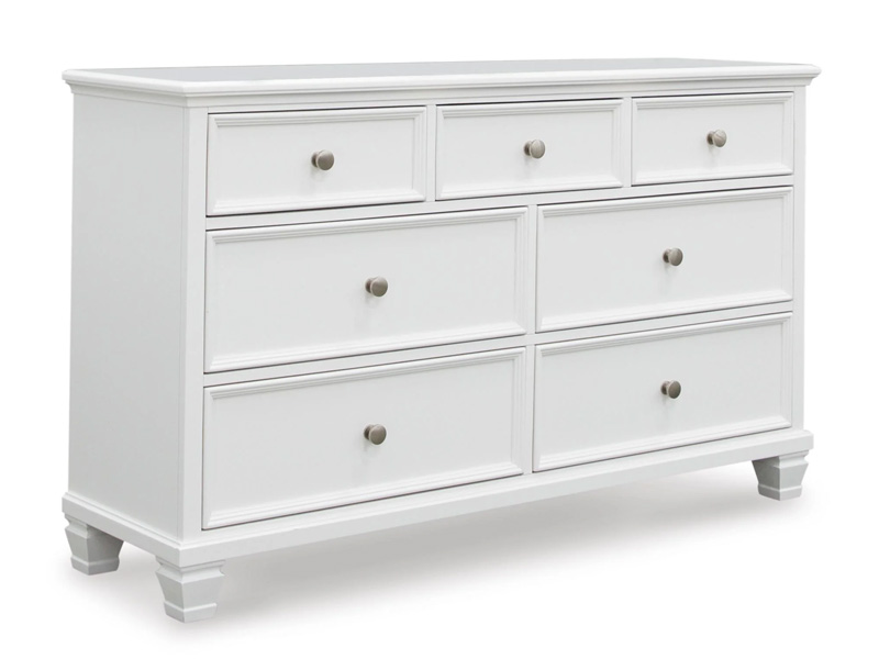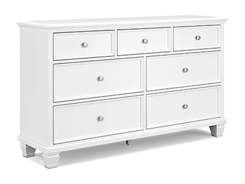 The Fortman dresser exudes timeless casual design that's ready to define your personal space. Its clean, contemporary white finish, framed drawer fronts and round metal knobs easily adapt to a variety of interiors. Featuring seven storage drawers with dovetail construction and traditional tapered feet, this piece is sure to bring elegant simplicity to your bedroom.