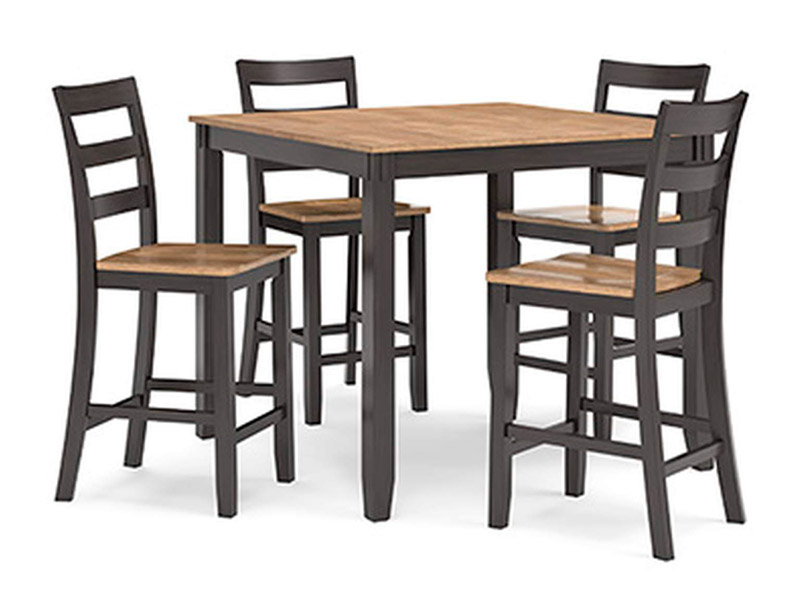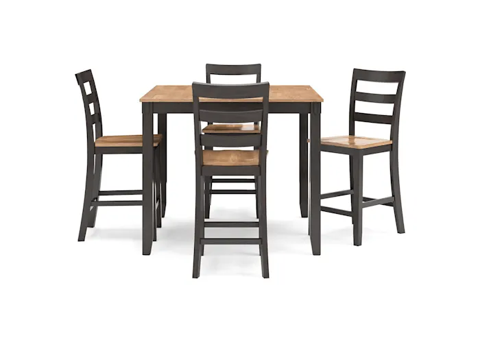 The Gesthaven counter height dining table with bar stools has a casually cool style, yet it still turns heads. The two-tone table and bar stools are effortlessly handsome. And the ladderback bar stools cater to your comfort with contoured seats. Aside from dining, this set's relaxed simplicity is perfect for homework, morning coffee or checking all those emails.