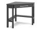 Stunningly streamlined. This home office corner desk provides a polished, practical solution for small spaces. Its sleek black finish pairs with a variety of styles, while the center drawer offers convenient storage for essentials. Simply slip this clean-lined piece into the corner of your choosing for a spot to study or work from home.