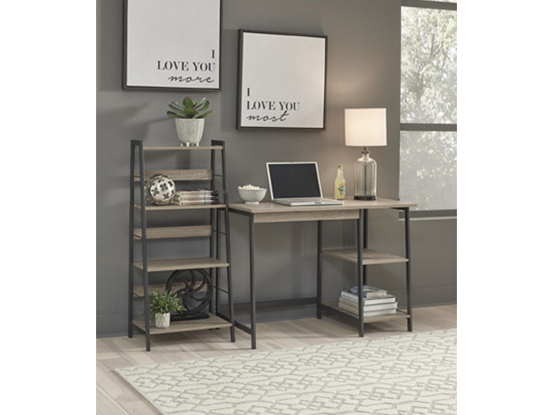 Make it work in high style with this laptop desk with bookcase. This 2-piece set comes with a sleek desk with two shelves to hold your desktop or a printer. Use the 4-shelf bookcase to hold textbooks or reference materials. Reclaimed wood finish gives the modern, open-concept design a warm, homey feel.