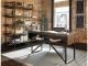 For fans of urban industrial design, this desk steals the show. Its top is crafted with a mix of acacia veneer and wood beautified with an oiled walnut-tone finish. A sleek tubular metal frame and linear, large-scale pulls pull it all together. The cutout shelf on the desk’s front side incorporates added dimension.
