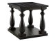 This black end table has a dramatic presence—exactly what an eclectically styled room needs. Solid wood planks and thick veneer merge seamlessly together for a hearty helping of style. Handsomely turned legs connect to a lower shelf flush with the floor. A rustic wirebrush technique gives this stunning square end table in black with show-through contrasting just enough of a weathered sensibility.
