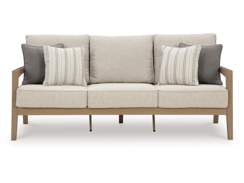 The Hallow Creek sofa is a beautiful addition to any outdoor living space. Effortless in its simplicity, this piece echoes your easygoing sensibilities. Combining durable, cutting-edge engineered materials, its Weatherwood construction enhances the contemporary design. Rest assured, the thick cushions and accent pillows are wrapped in high-performance fabric that’s fade-resistant, stain-resistant and a breeze to clean. Pair with the matching loveseat and swivel lounge chair for a spectacular seating arrangement.