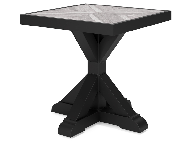 Sporting an easy-on-the-eyes elegance, the Beachcroft end table elevates the art of alfresco living. Beautiful and durable enough for indoor and outdoor use, this high-style/low-maintenance table charms with X-leg farmhouse styling. With a unique reverse diamond tile pattern, the thick porcelain tabletop provides unparalleled sophistication.