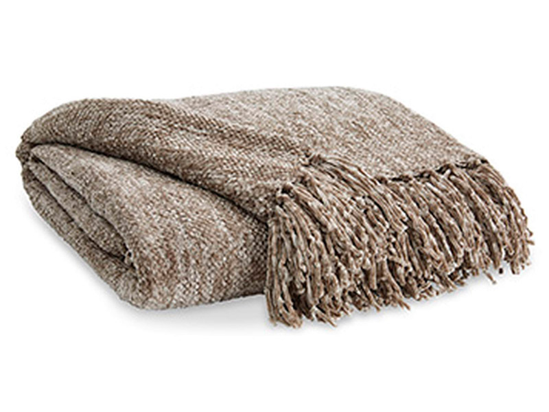 A lovely layer to cozy up with, this taupe throw blanket also makes a stylish statement. Whether draped over the arm of a sofa or folded at the foot of a bed, the woven texture and knotted fringe give it a homespun look that's relaxed and inviting.