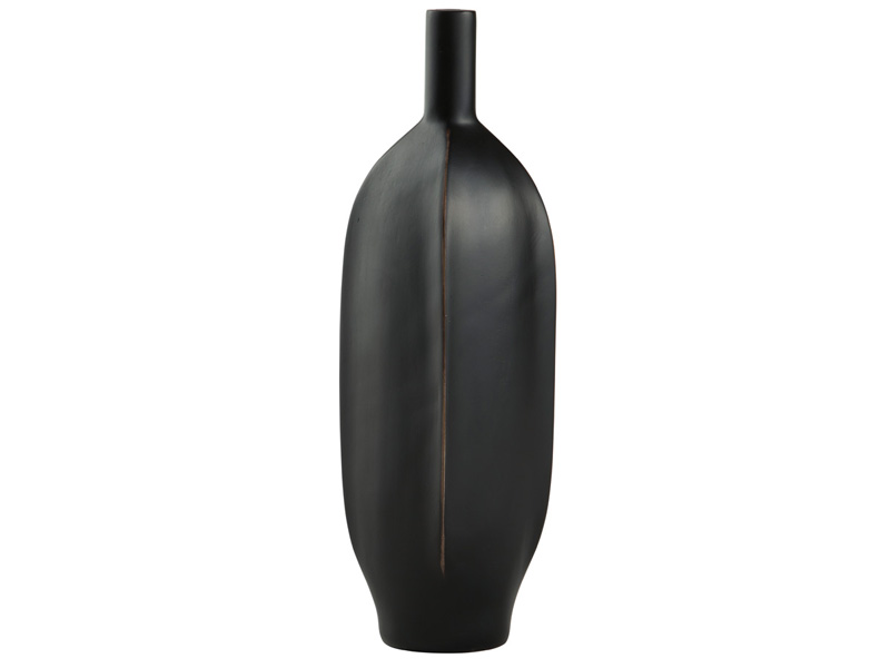 Impress with the simply sleek stylings of this vase. A black finish coats the piece, with a brown rub on the corners acting as a subtly eye-catching design element. What a chic addition to your bookcase, mantel or tabletop.