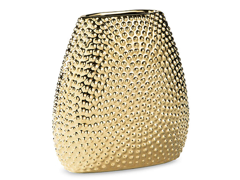 Upgrade your interiors with the elegant look of gold. This glazed goldtone ceramic vase is a beautiful way to display a floral arrangement. But it also draws attention even when sitting empty on a mantel, tabletop or other surface.