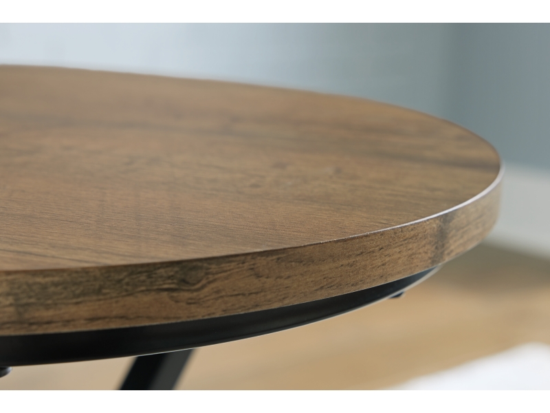 Casual contemporary design. Made with black metal tube, decorative laminate and MDF substrate. Round tables help make the most of your small space by bunching the short end table with the cocktail table for a trend-right style statement. 3-in-1 pack. The end table measures 18"W x 18"D x 23"H.