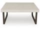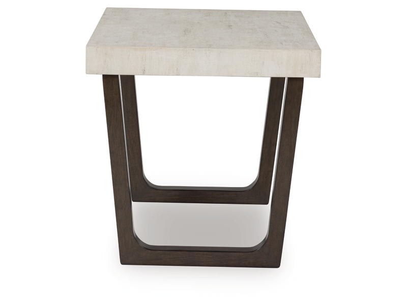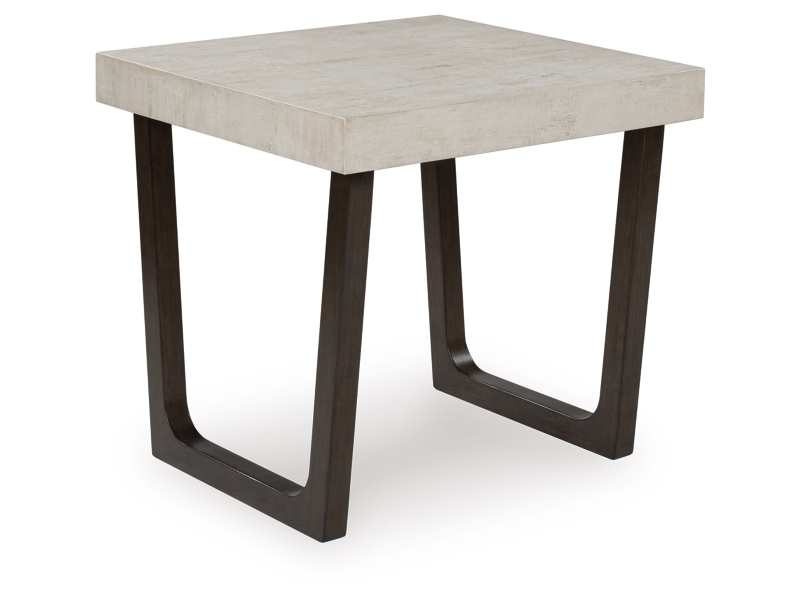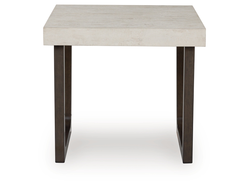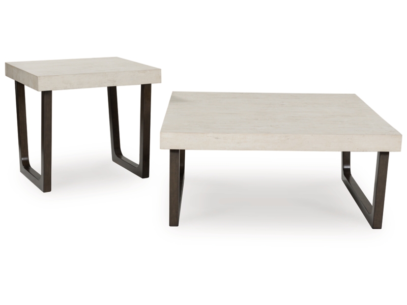 Casual contemporary styling. Made with hardwood solids, decorative melamine laminate and MDF substrate. Legs are finished in a dark espresso brown color with dark wood grain contrast. Thick tabletop design features a durable light gray faux cement melamine laminate. End table dimensions: 24"W x 26"D x 24"H. 2-in-1 pack.