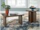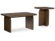 Casual lifestyle design. Made with hardwood veneer with an embossed wood grain texture and MDF substrate. Classic medium brown wood tone finish. Clean-lined design with architectural geometry. This group is designed for the utmost flexibility, it can be placed seamlessly into a casual or a refined setting. 2-in-1 pack.