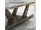 - Weathered gray wood grain finish on legs and lower shelf