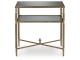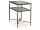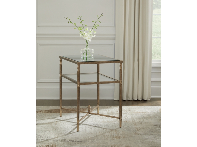 This end table gives traditional design a wonderful sense of relevance. Its details, which include embellished legs and a stretcher with a decorative center finial, are timeless classics. The aged goldtone coloration is the essence of relaxed elegance. An underlying shelf adds style, substance and functionality.