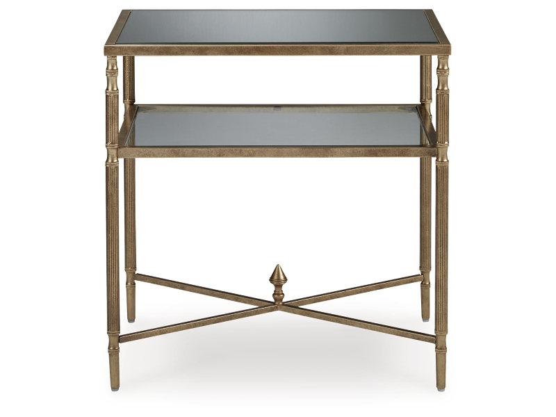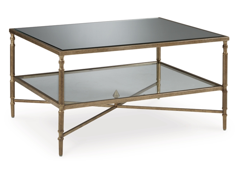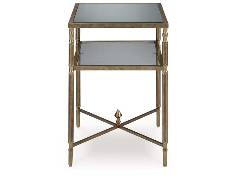 This occasional table package gives traditional design a wonderful sense of relevance. Its details, which include embellished legs and stretchers with a decorative center finial, are timeless classics. The aged goldtone coloration is the essence of relaxed elegance. Underlying shelves add style, substance and functionality.