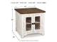 Double take. Sporting a two-tone finish, dual-sided lid design and expansive storage space, this occasional table set takes the art of rustic farmhouse living to a new level. Designer touches include plank-effect styling, heavy distressing and industrial bracket hardware.
