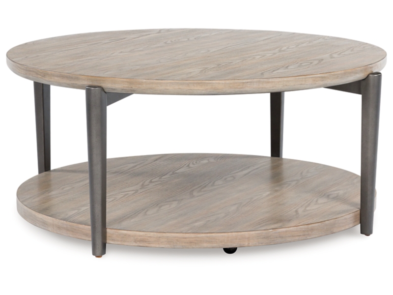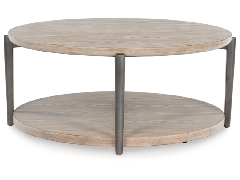 Merging industrial and contemporary elements, this coffee table turns display space into an art form. The whitish brown wood-tone finish is right on trend, while contrasting painted metallic legs offer a modern touch of stripped-back beauty. With its streamlined design, this table proves that less is more.