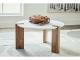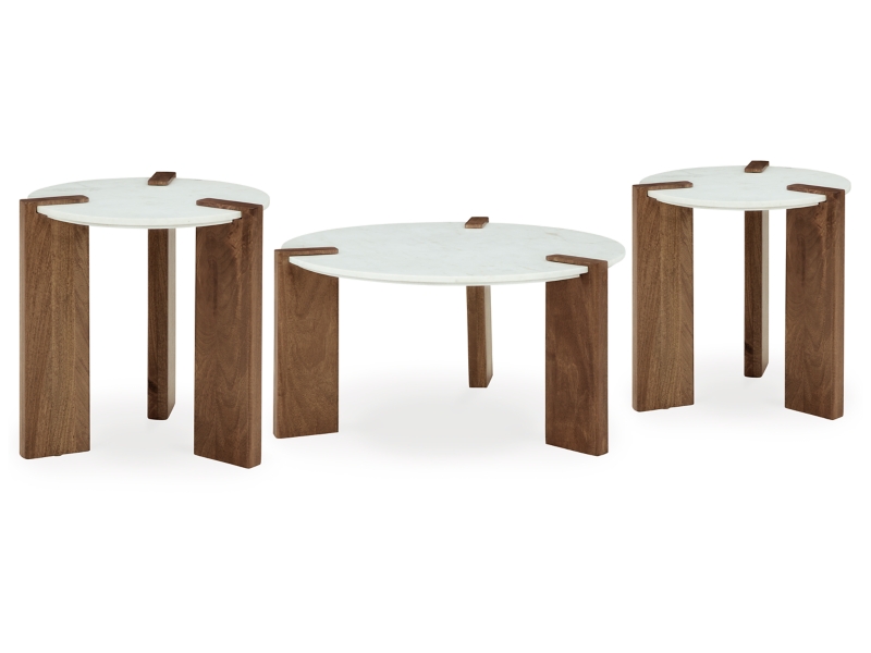 With its back-to-nature sensibility, the Isanti coffee table is a natural fit for outfitting your modern living area. Its clean-lined design lets the beautifully organic quality of the mango wood shine through, complemented by the sleek refinement of a marble top. This table is the ideal spot for snacks, beverages and that stack of unread books. 2 Matching end tables included.