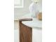Natural Contemporary design. Made with solid Mango wood base and natural marble top. Natural light brown finish and white marble.