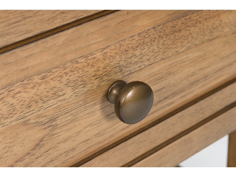 - Dark bronze-tone drawer pulls