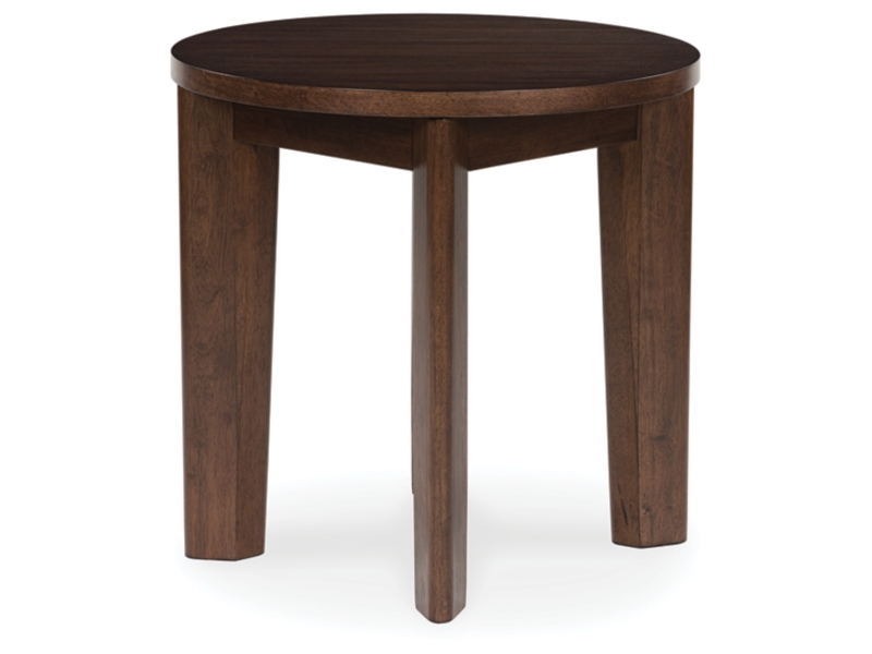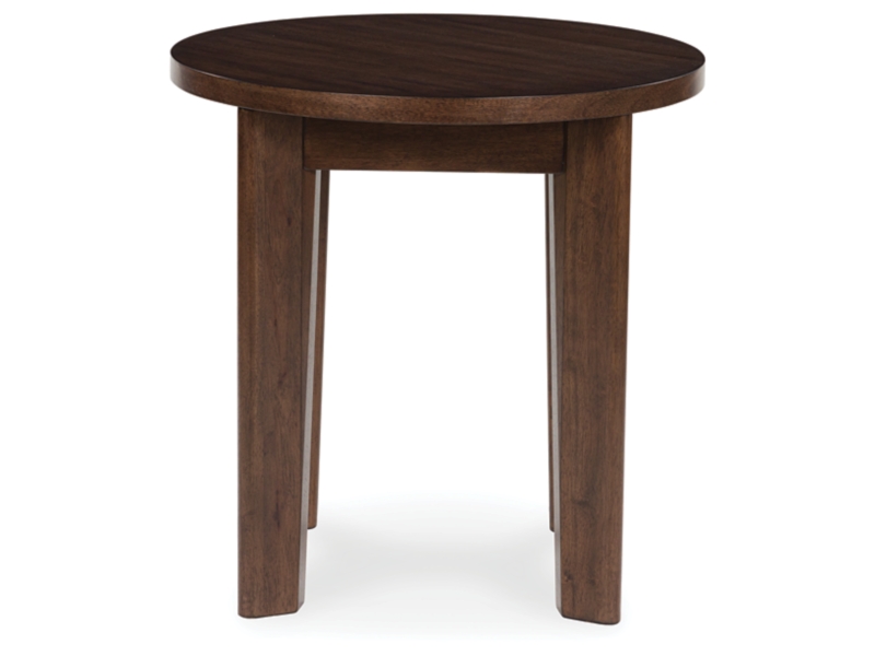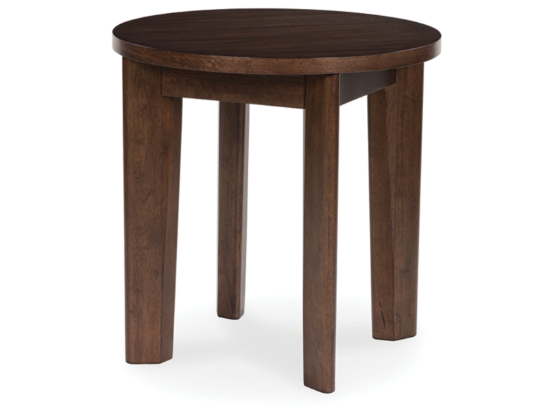 It's hard to say what's most striking about this round end table. Is it the rich warm brown finish or the thick tapered legs? Either way, the table's clean, contemporary aesthetic is perfect for your casual lifestyle. It would look perfect right next to your couch or accent chair.